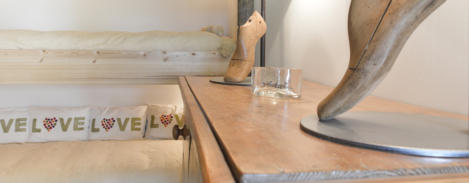 La plus part des meubles de cette chambre sont des pièces uniques créées par les propriétaires.